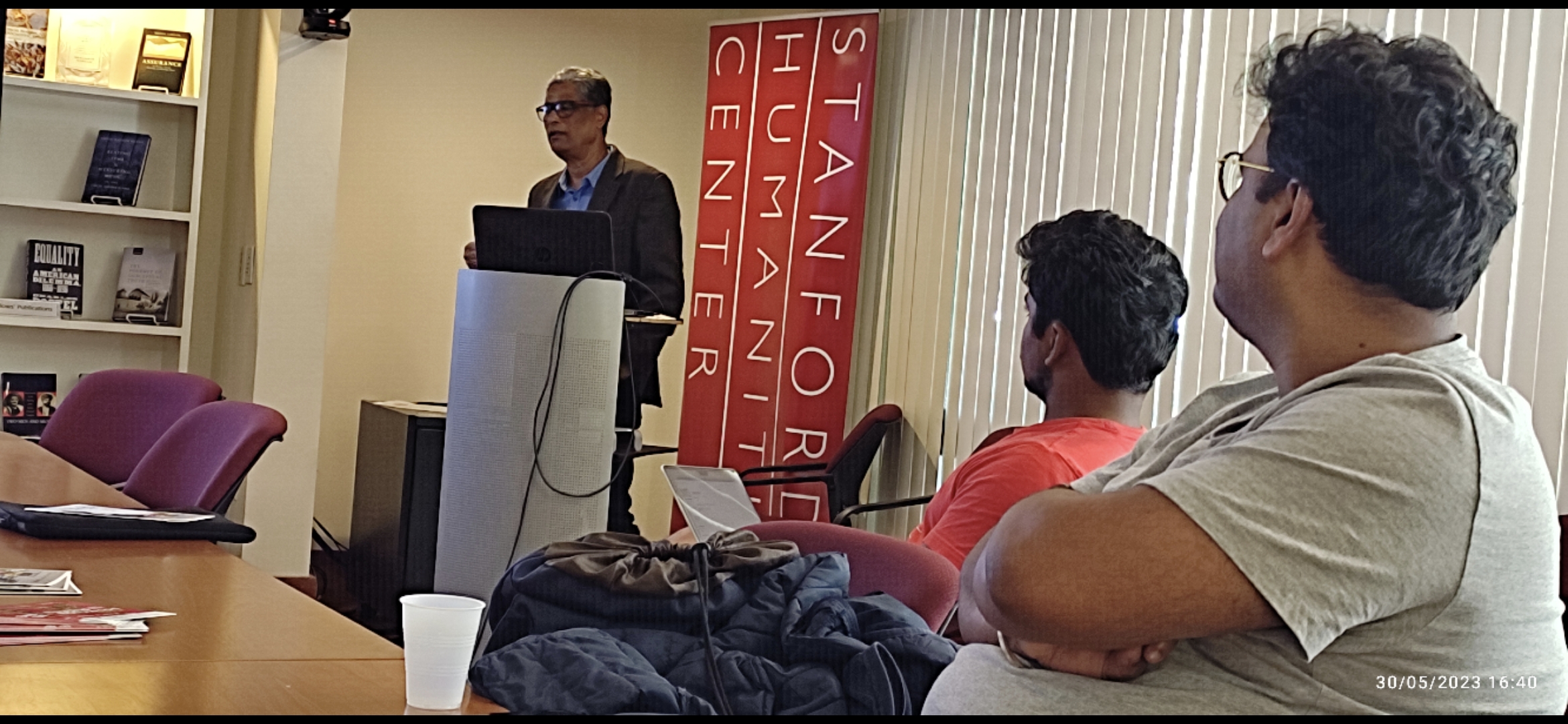 Rahmath Tarikere lecturing as Visiting Professor at Stanford, 2023