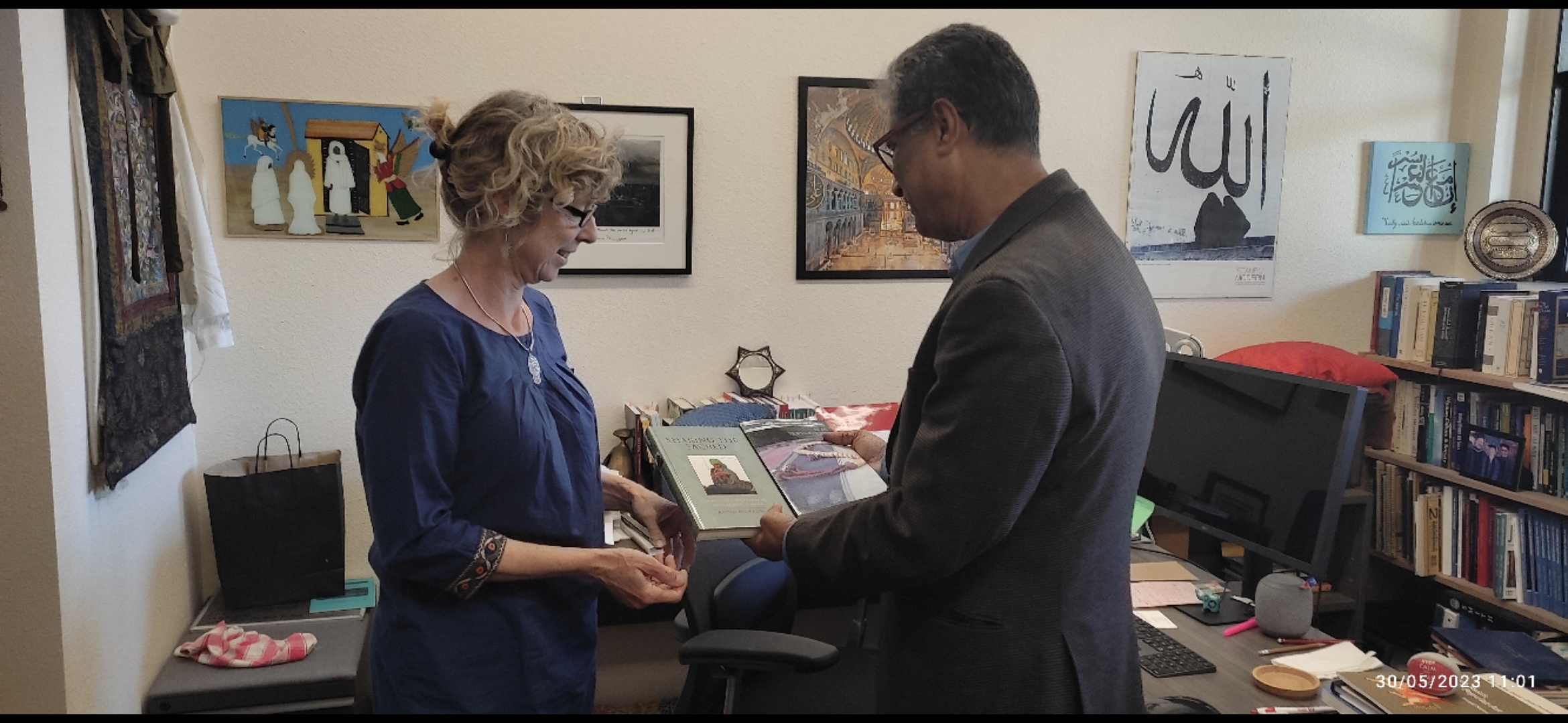Rahmath Tarikere discussing Sufism .with Prof. Anna Bigelow at Stanford