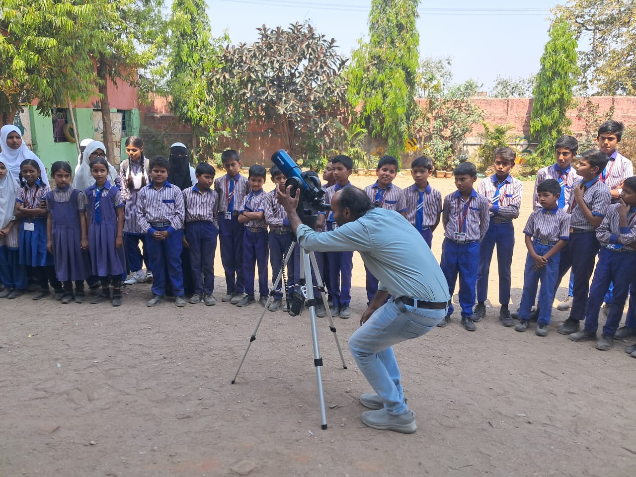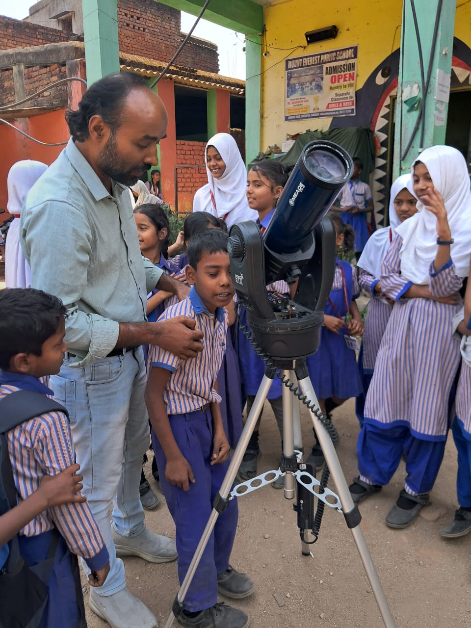 Sajid Hussain showing the use of telescope to children