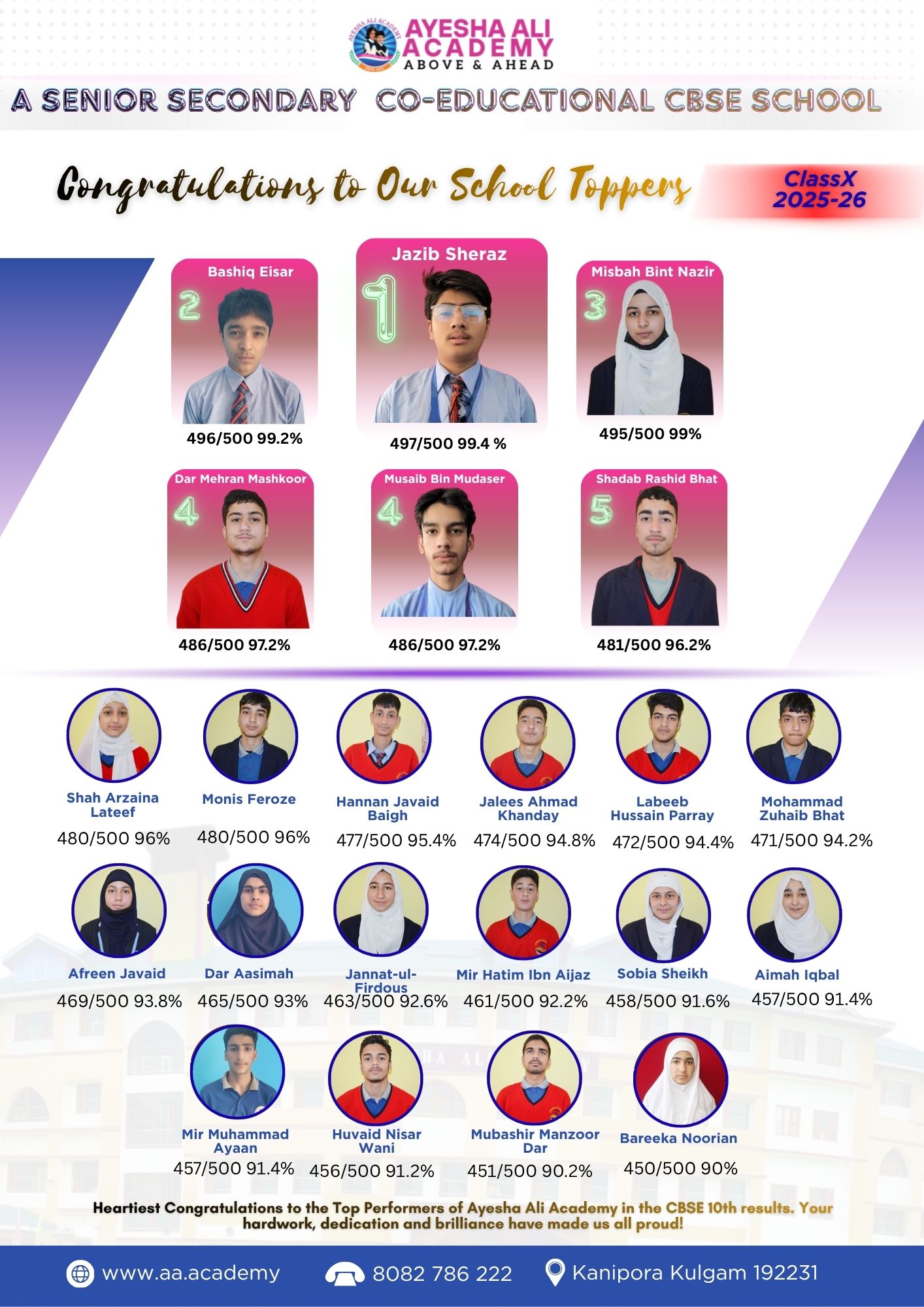 Dar Mehran Mashkoor (97.2), Musaid bin Mudaser (97.2) and Shadab Rashid Bhat have scored 96%.