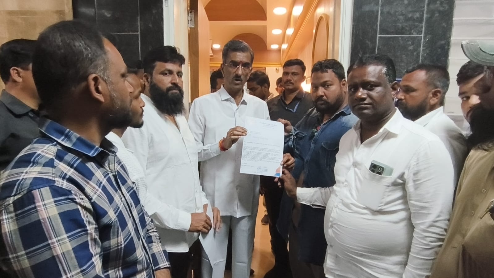 Me Muslim Mavala Chatrapatincha handing over the letter to minister Shambhuraj Desai
