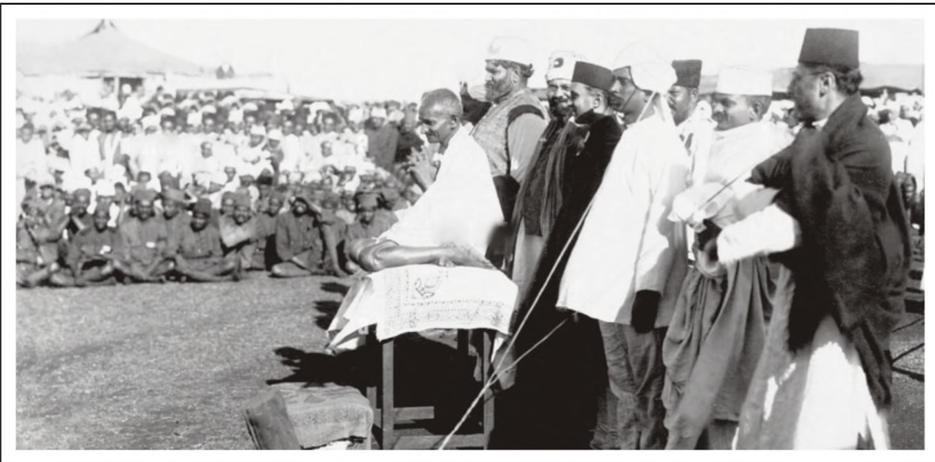 The meeting was part of the Khilafat Movement and had a majority of Muslims. This was no one-off event. Another CID report from 22 April 1920 recorded a meeting of Shaukat Ali as, “On the 14th April, Maulana Shaukat Ali and his two supporters from Sind held a meeting in the Idgah compound, Sholapur, under the auspices of the local Khilafat Committee……. After several religious songs and Bande Mataram the address was read out in English by a butcher of Bijapur. It was then translated into Urdu by Abdul Haq Abdul Rajak (President, Sholapur Khilafat Committee) and into Marathi by J. M. Samant, Pleader, both of Sholapur. Its purport was that Shaukat Ali and his brother Mahomed Ali had revivified the political life of Moslems in India.”