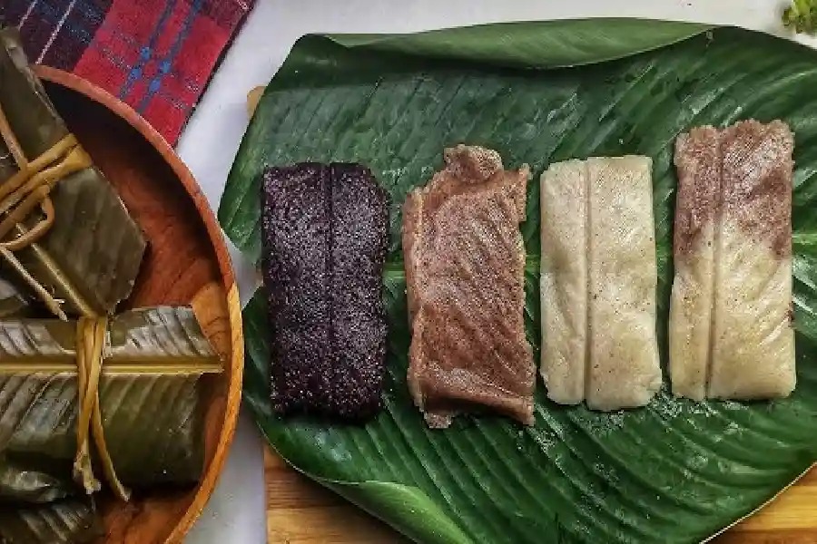 In Nagaland, roasted pork with bamboo shoot, fermented soybean dishes, sticky rice and fresh herbs are cooked in large wooden dishes for community feasting by the entire village together. In Mizoram, families keep the doors of their homes open for guests throughout Christmas by presenting fresh pork stew, cooked vegetables and traditional sticky rice called bai.