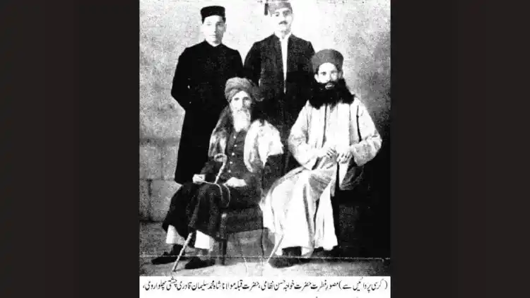 Khwaja Hasan Nizami with Allam Iqbal and other poets (Courtesy Twitter of Indian Muslim History)
