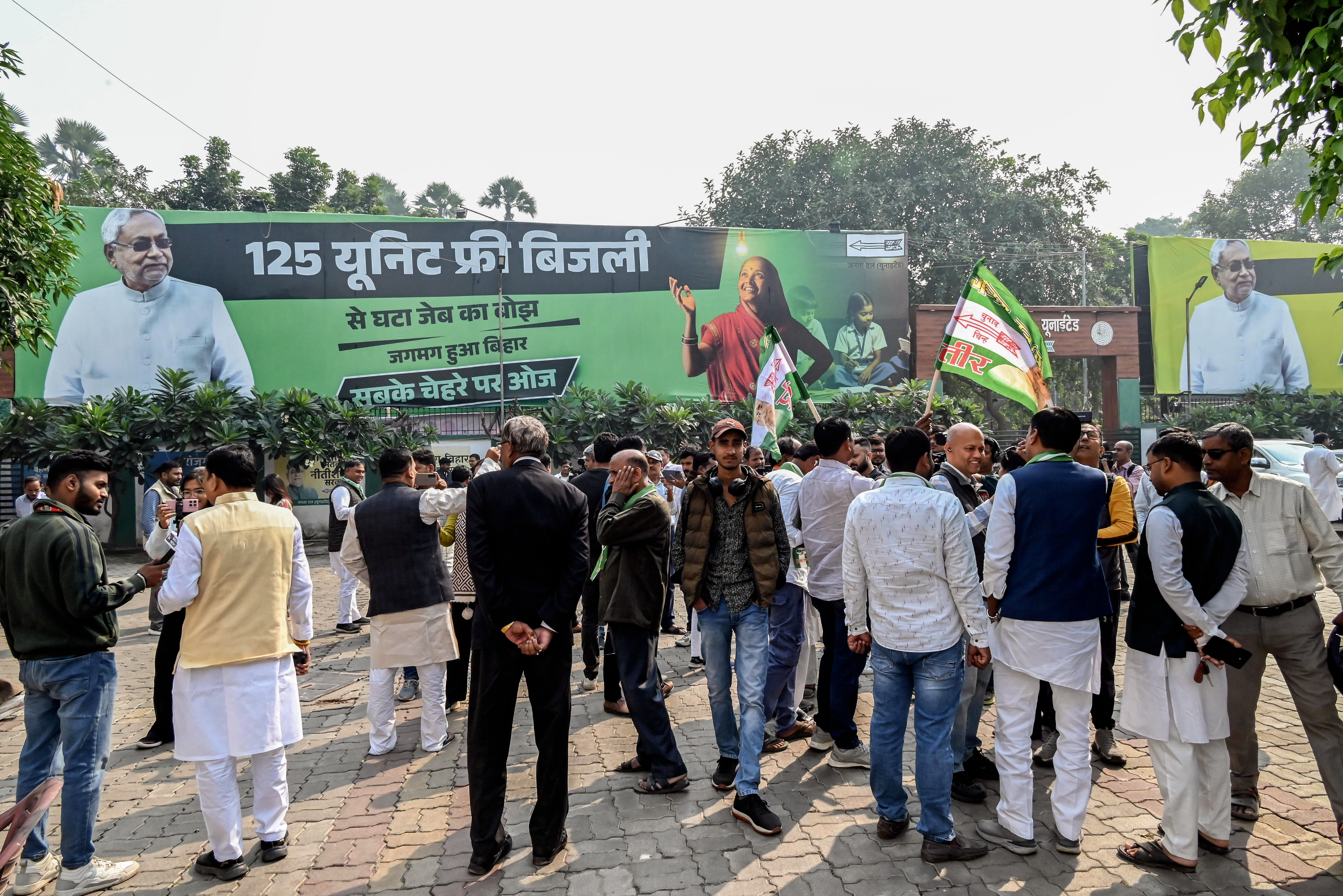At several spots, groups of JD(U) workers stood posing beside the posters as though unveiling a premature victory banner.