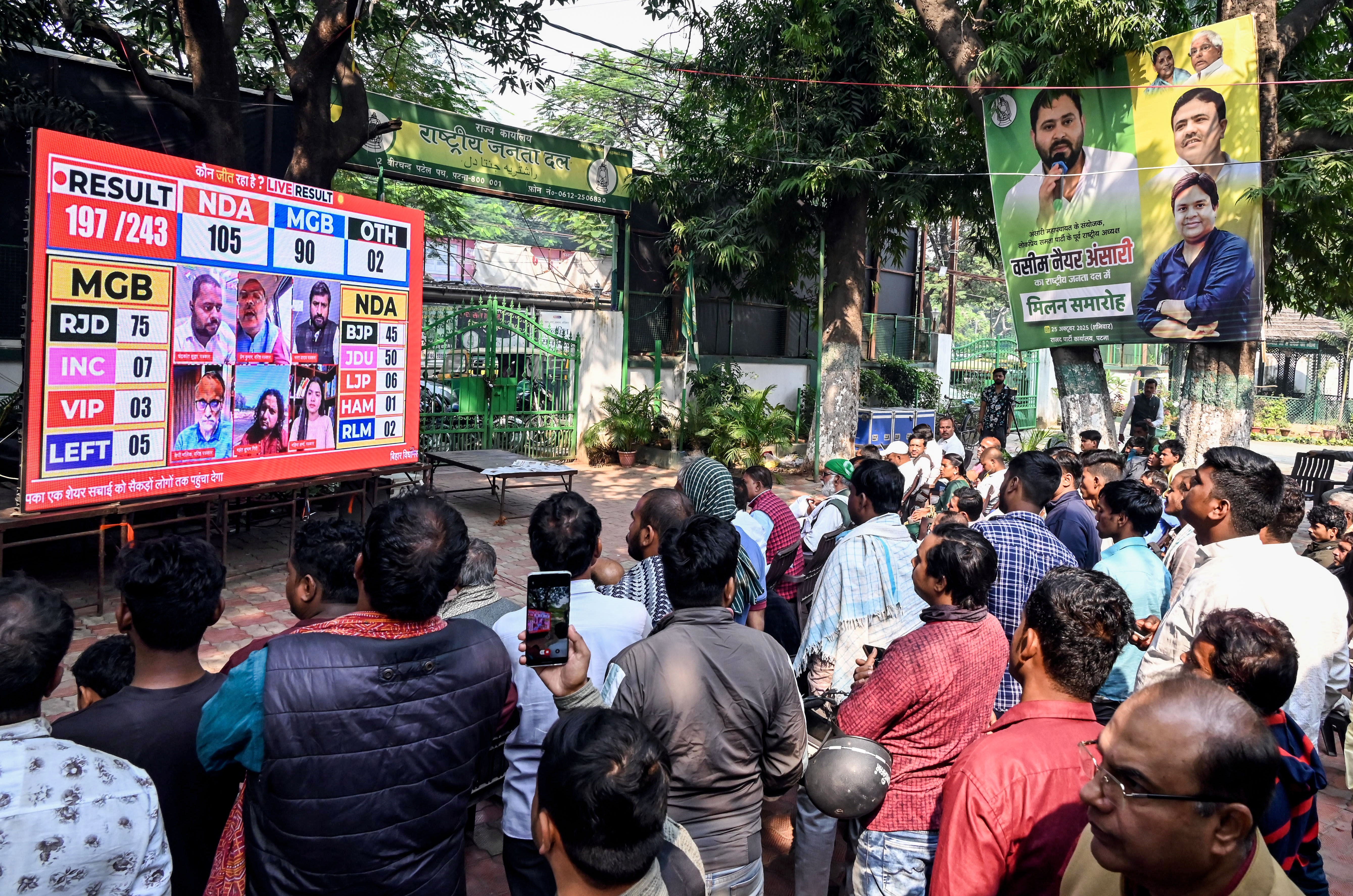 People watching live coverage of the election result in Patna
