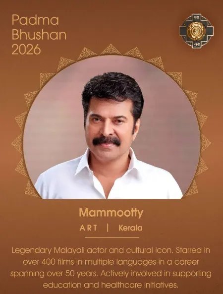 South Indian cinema's superstar Mammootty has been named to receive the Padma Bhushan, the second-highest civilian honour in India, and four more Muslims have made it to this year's list of Padma Shri nominees for their contributions to art and literature. The government released a list of 133 persons who have been named for the civilian awards, bulk of which are in the Padma Shri category.