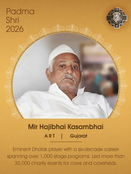 Mir Hajibhai Kasambhai is a famed Gujarat artist. Hailing from Junagadh, Mir Hajibhai Kasambhai is being honoured with the Padma Shri for his significant contribution to the field of art. Popularly known among the masses as ‘Haji Ramakdu’, he is renowned for his unique style of playing the Dholak.