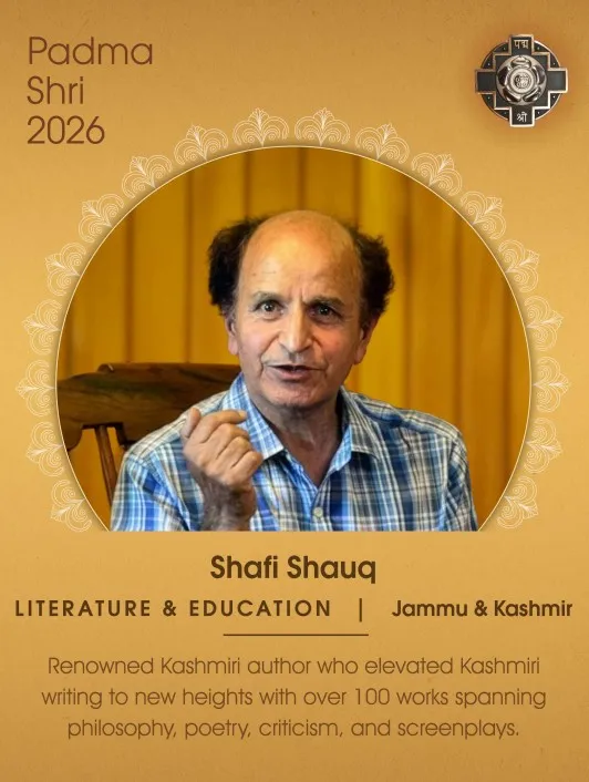 Shafi Shauq is an eminent Kashmiri scholar, poet, linguist and translator Prof Shafi Padma Shri has been named for the Padma Shri Award 2026, for his outstanding contribution to education, language and literature.