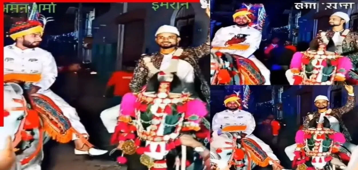The video from Baroda, Gujarat, shows two young men from different religions walking together in their neighbourhood in a grand style, accompanied by a band and horses.