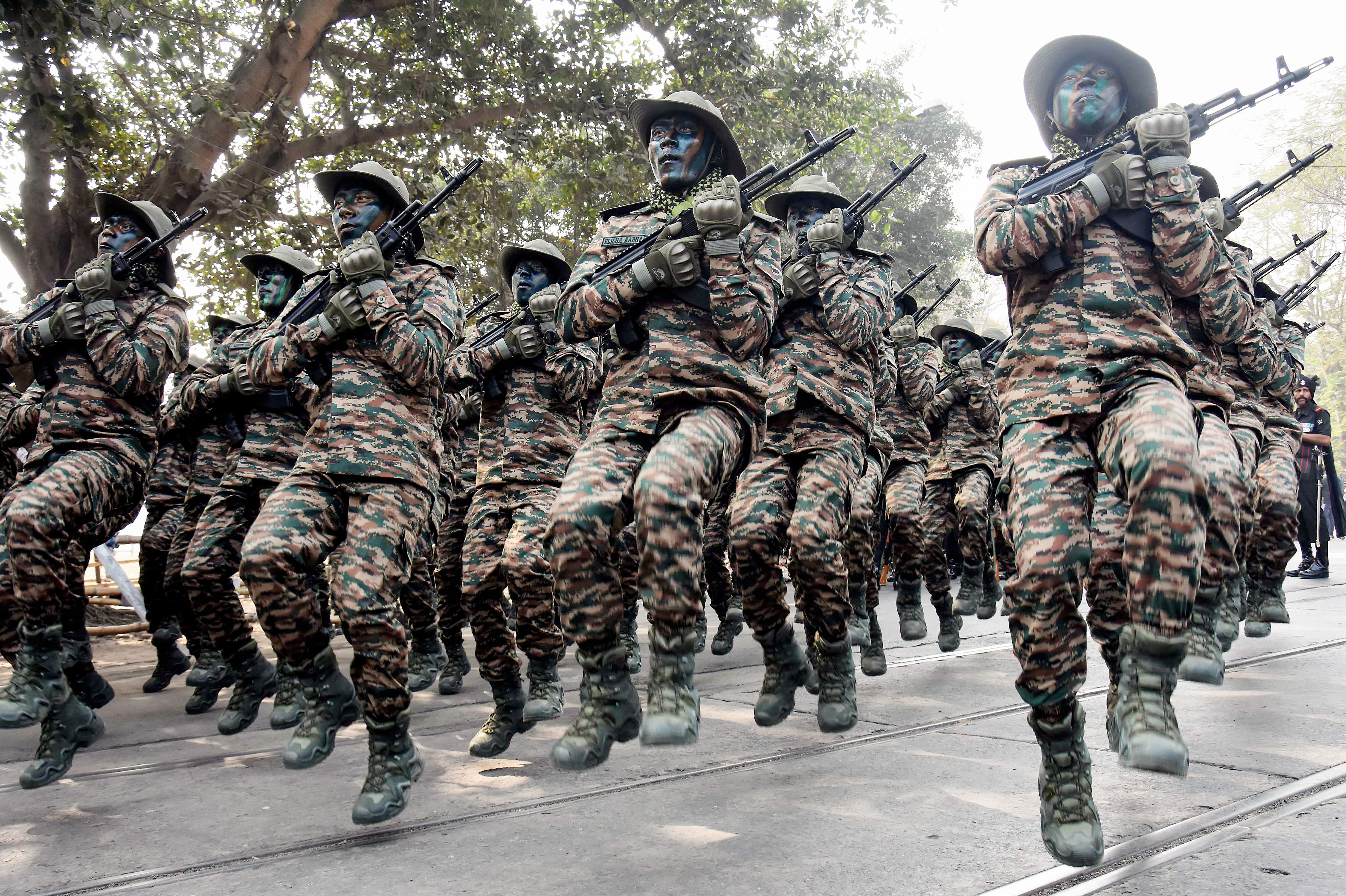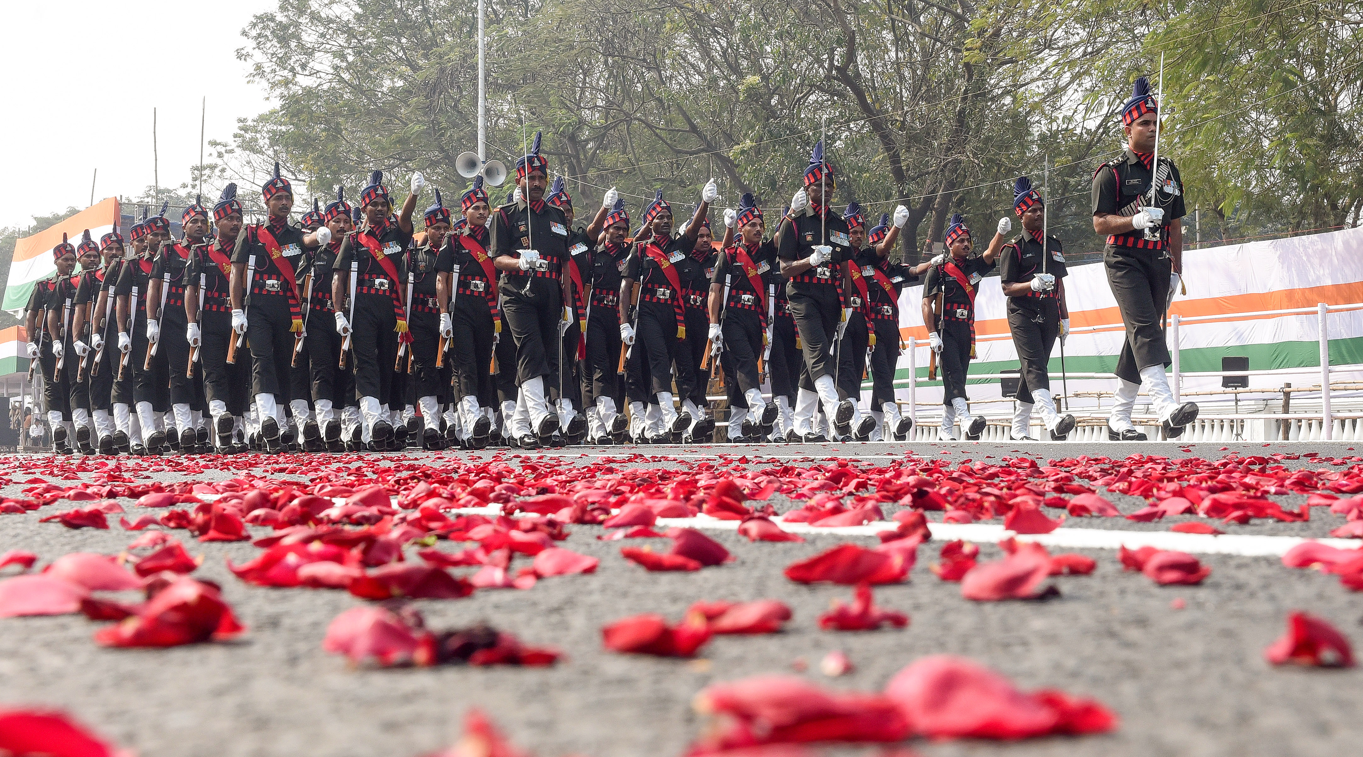 A total of seven marching contingents of the Army, including an animal contingent comprising Zansker ponies, Bacterian camel and dogs with Handlers Contingent, SCOUTS Contingent, RAJPUT Contingent, ASSAM Contingent, JAK LI Contingent, ARTY Contingent, BHAIRAV Contingent in ‘Uncha Kadam taal’ and Ladakh Scouts, will march post the saluting dais.