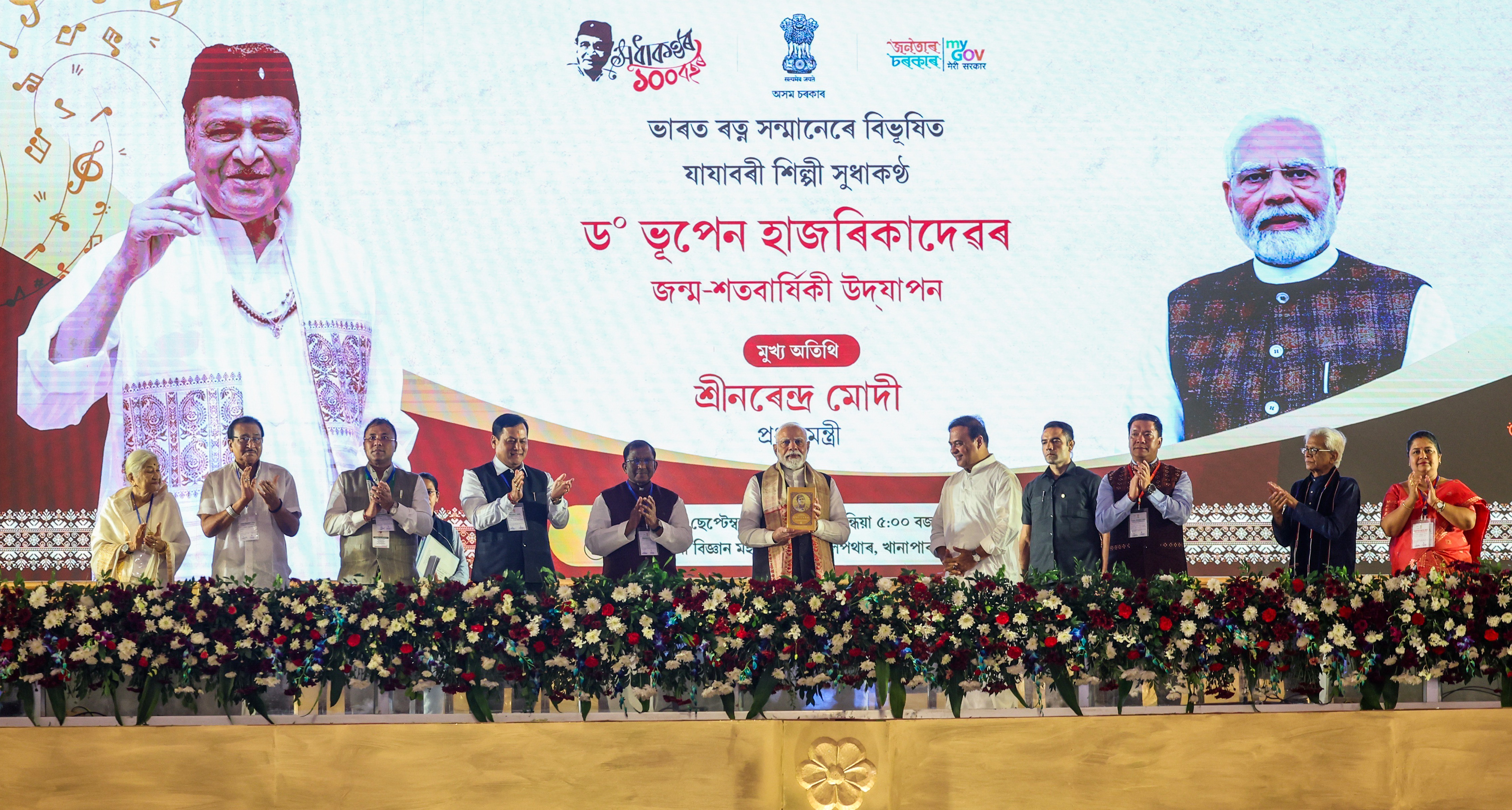 Prime Minister Narendra Modi and others at the commemoration of Bhupen Hazarika's 100 birth anniversary in Guwahati
