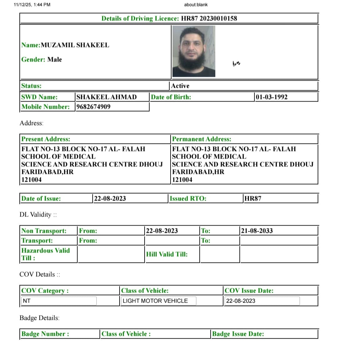 Back home, encrypted Telegram chats and private groups on WhatsApp and Signal became their virtual meeting rooms.Dr Muzammil and Dr Umer joined a Faridabad university as lecturers, setting up their operational base there and even obtaining local driving licences to blend in.