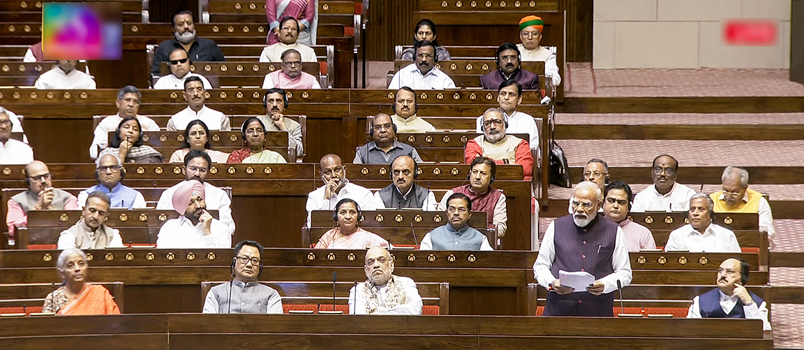 Prime Minister Narendra Modi speaking on West Asia crisis in Rajya Sabha