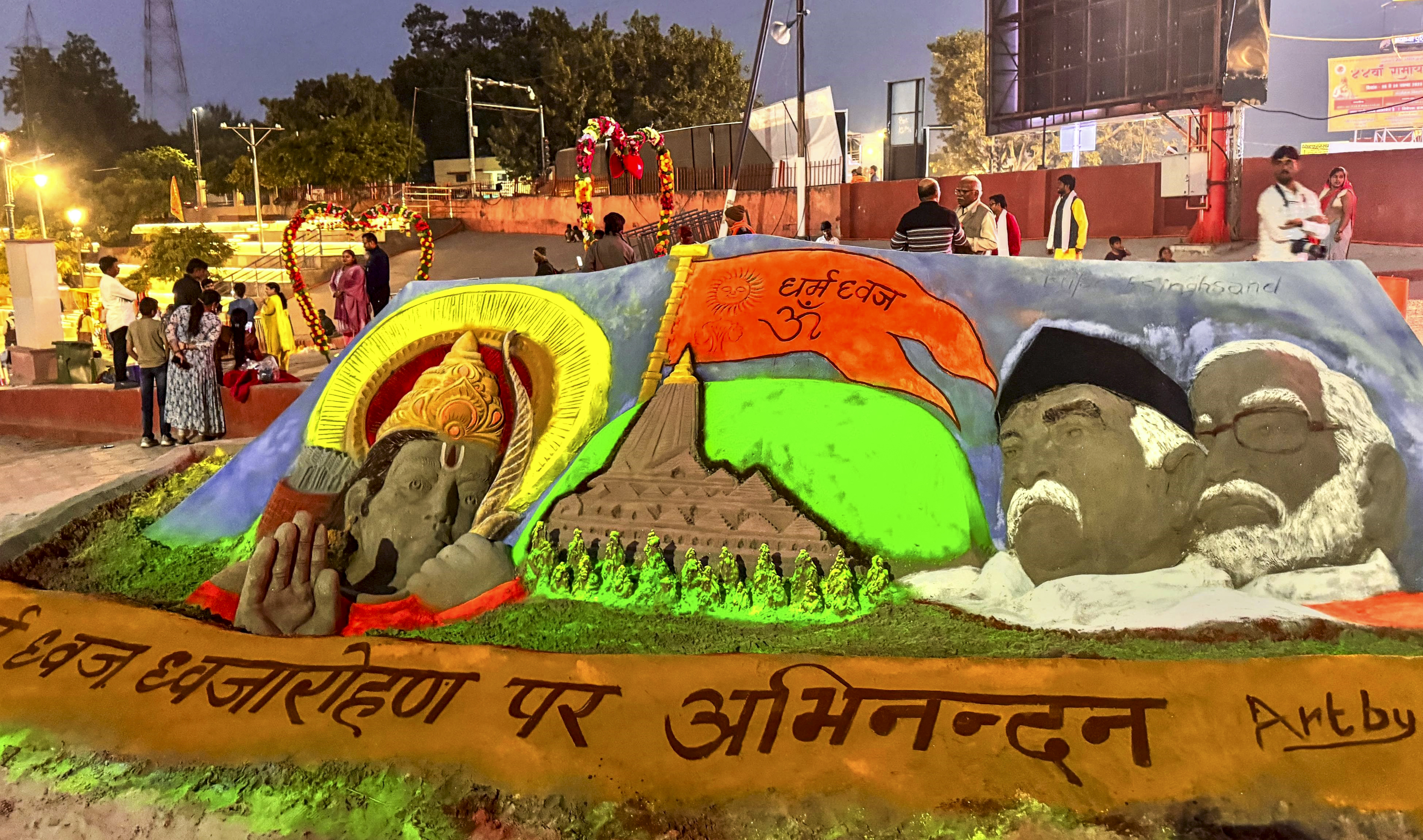 At around 12 noon, the Prime Minister will ceremonially hoist a saffron flag on the Shikhar of the sacred Shri Ram Janmbhoomi Temple in Ayodhya, symbolising the completion of the temple's construction and ushering in a new chapter of cultural celebration and national unity. The Prime Minister will also address the gathering on this historic occasion.