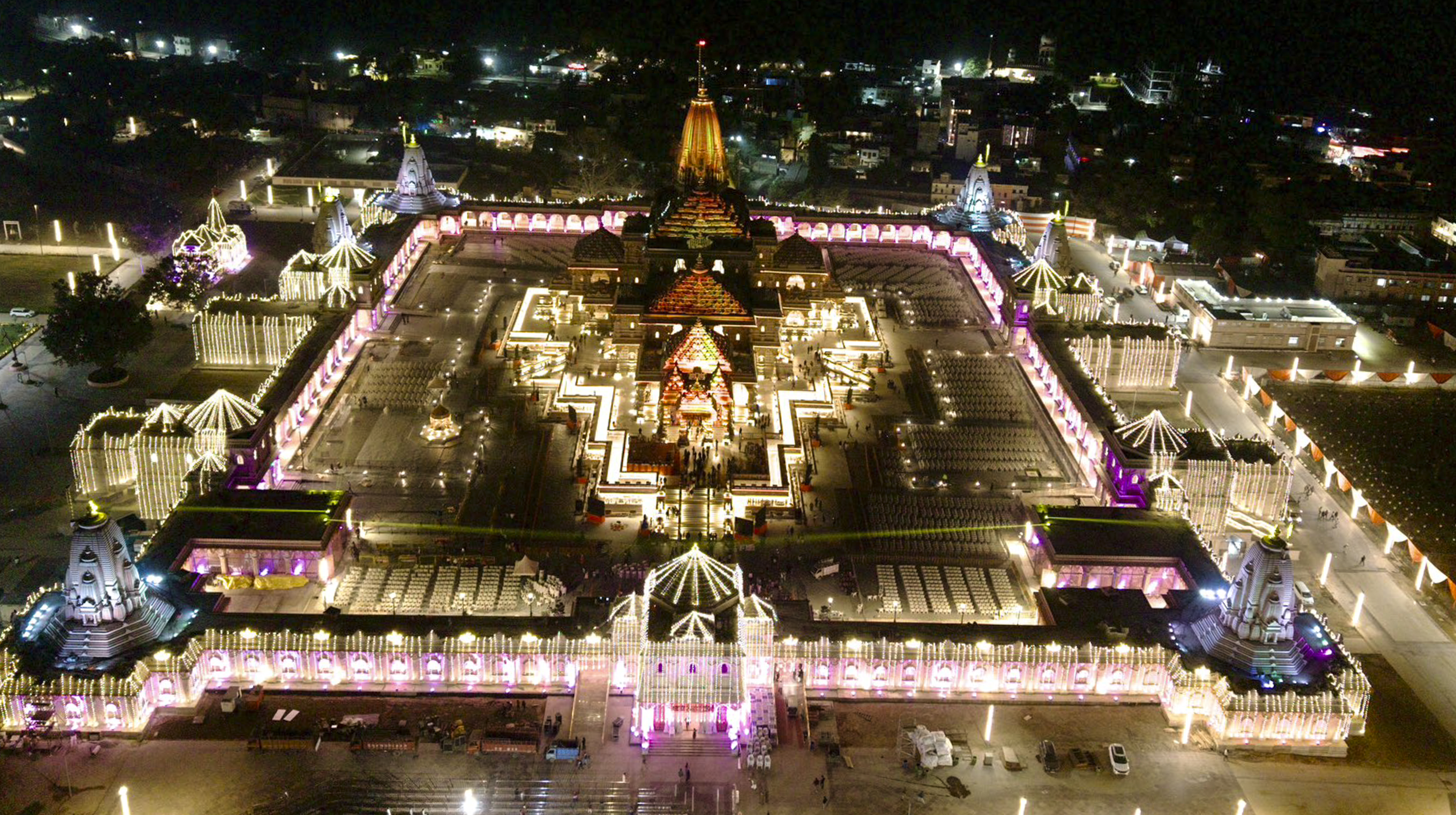 A release said that the temple complex features 87 intricately carved stone episodes from the life of Lord Ram based on the Valmiki Ramayana on the outer walls of the main temple, and 79 bronze-cast episodes from Indian culture placed along the enclosure walls.