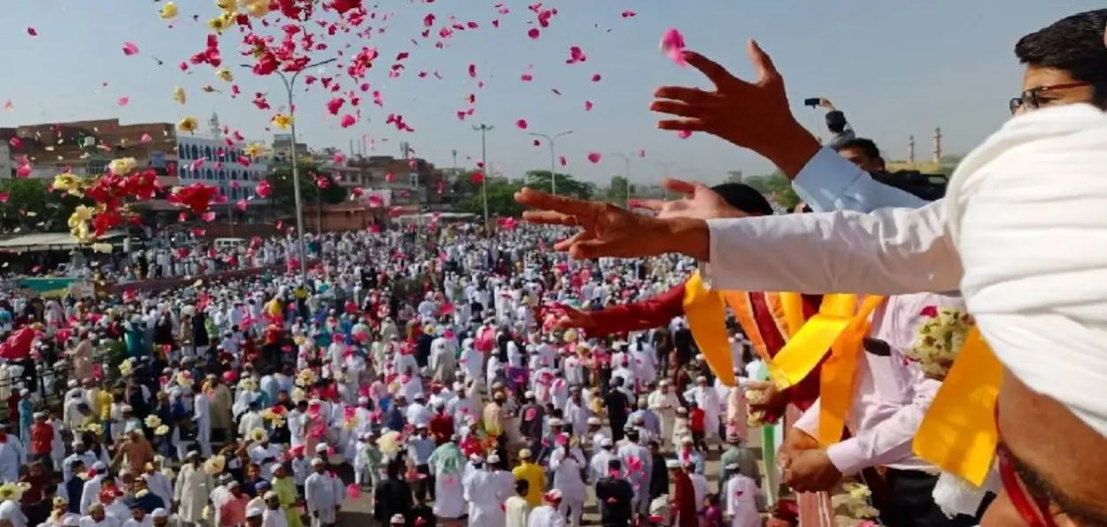 Hindus showering petals to honour Muslims as they return after offering Eid Namaz in Jaipur