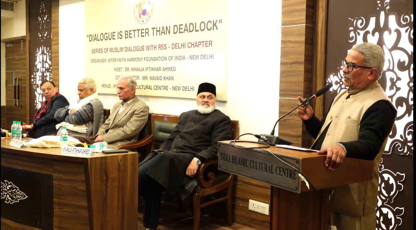 The discussion was organised by Interfaith Harmony, led by Iftekhar Ahmad Khwaja, at the India Islamic Centre, and was titled “Dialogue is Better Than Deadlock.”