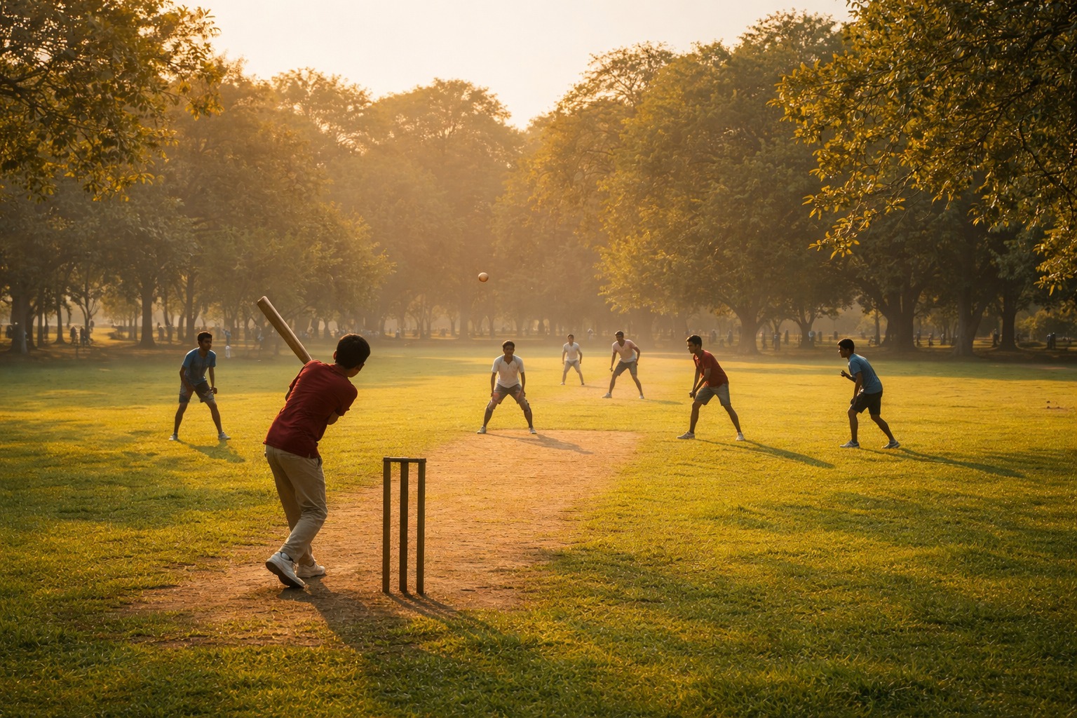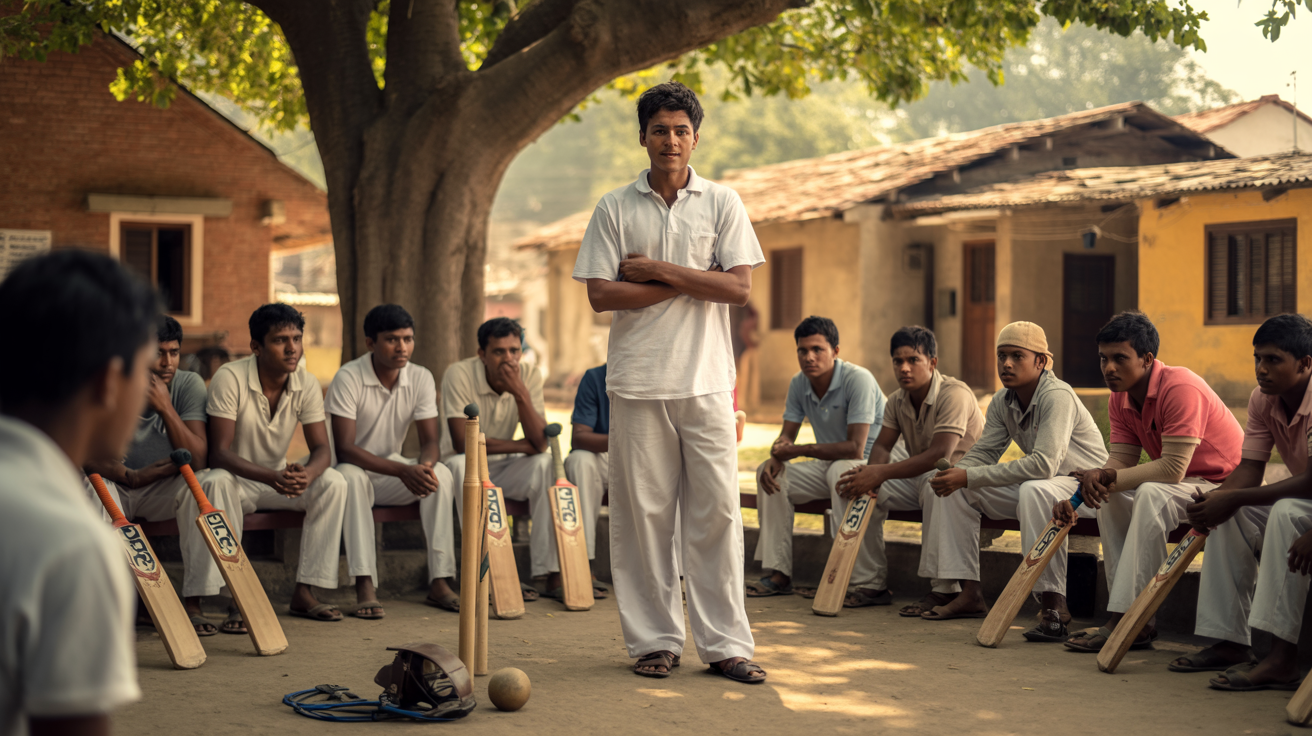 Author's brother speaking to young cricketers of Madhupur (AI-generated)