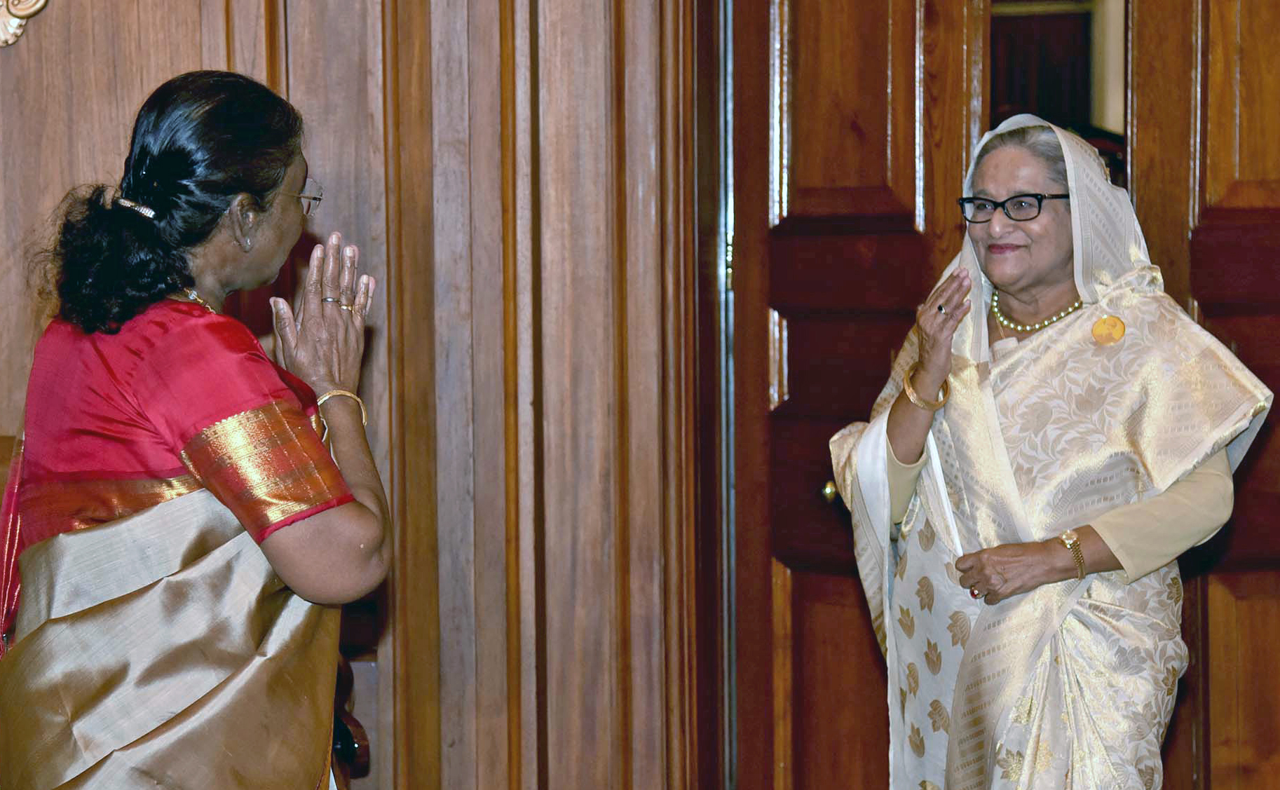 Sheikh Hasina meeting Indian President Droupadi Murmu during her official visit to India as PM (File)